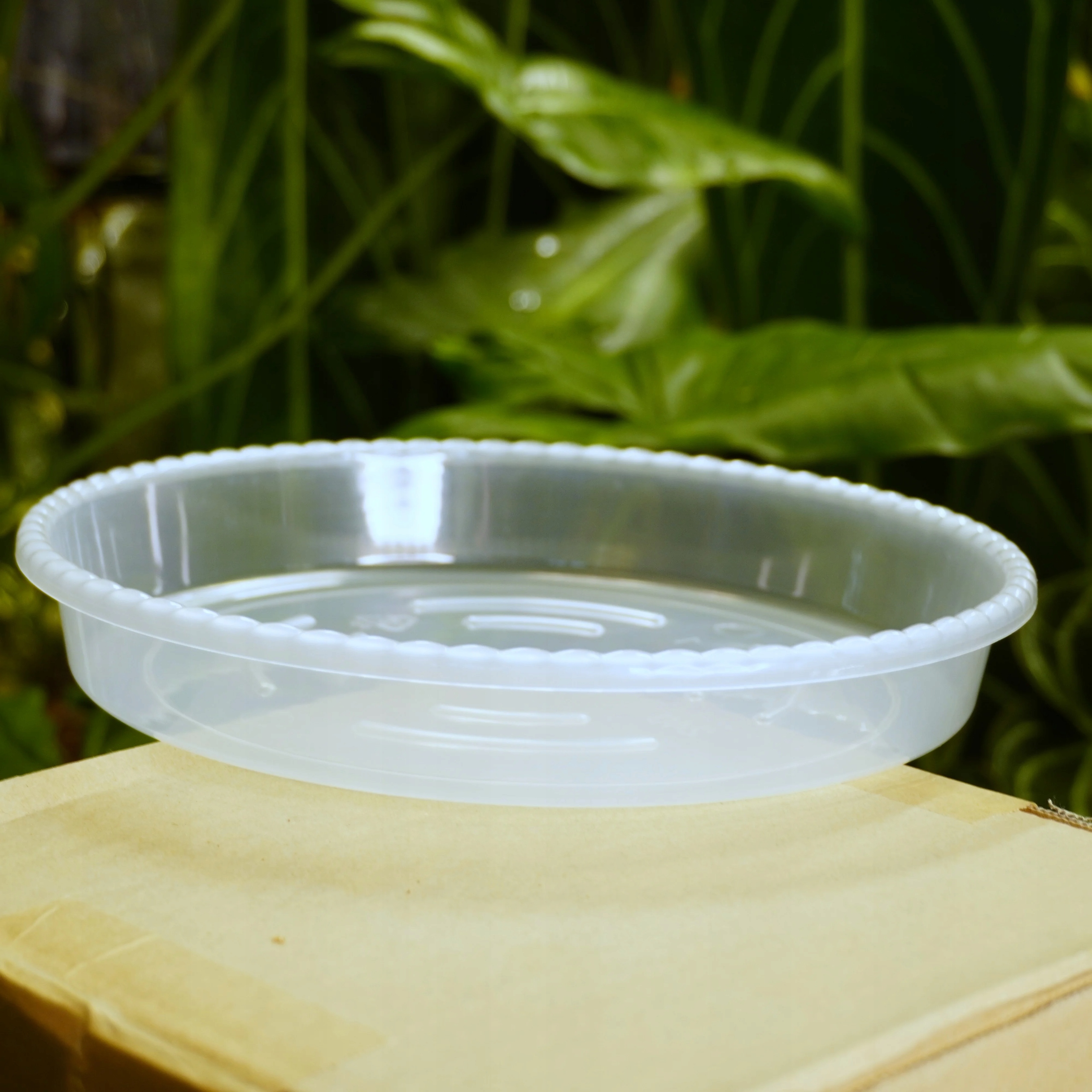 Przezroczysta podstawka pod doniczkę z polipropylenu (PP). Zbiera nadmiar wody po podlewaniu i chroni powierzchnie przed wilgocią. Dostępna w kilku rozmiarach.